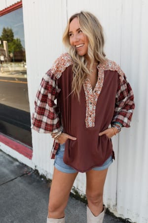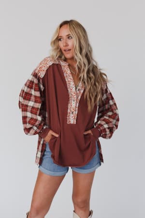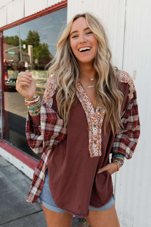 There's nothing better than a boho blouse like the Better Together Mixed Print Top!