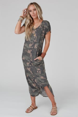 This boho t-shirt dress looks amazing with sneakers or dressed up with heels and a leather jacket.