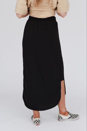 Excited to bring you the So Comfy Drawstring Maxi Skirt from our exclusive collection; The Nest by Three Bird Nest. Check out the rest of the collection here. This black drawstring maxi skirt pairs with virtually any top in your closet.