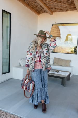 This boho jacket features a gorgeous patchwork detail that makes an instant statement.