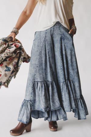 - MEDIUM: Waist: 26“, Stretched Waist: 30“, Rise: 14“, Inseam: 28“, Length: 40“, Hip: 48“, Flare: 37“