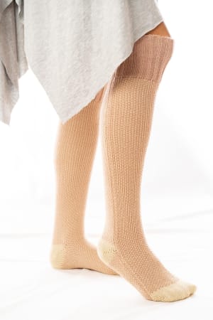 Lounging never looked so cute! These knitted lounge socks feature contrasting color detailing at the toes and heel with a large ribbed band at the top. Pull them up or shrug them down for a look that's cozy, comfortable and cabin approved.