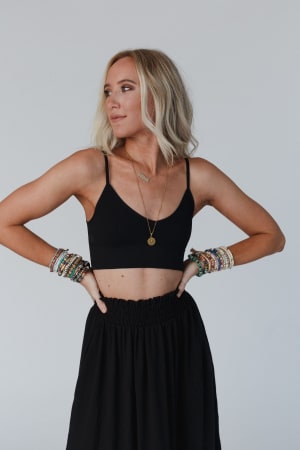 The ultimate, comfy bralette, the Dora Low Back Seamless Bralette, perfect to wear as a crop top itself or as comfy support underneath your tees and sweatshirts!