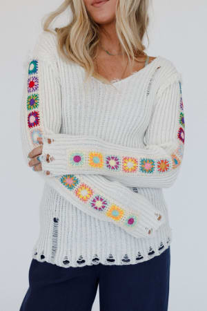 - Loose long sleeves with so CUTE crochet patch detailing