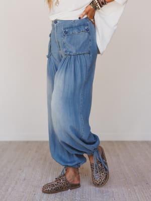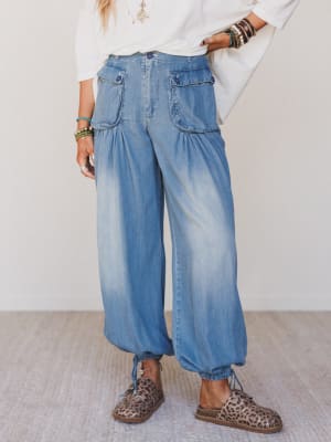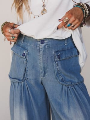 Make an everyday statement with these comfy and cute boho wide-leg jeans.