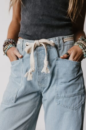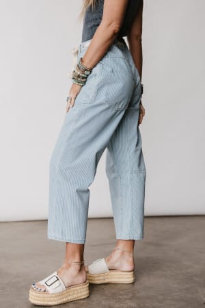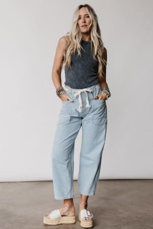 These bohemian jeans feature a unique barrel silhouette that makes them perfect to pair with chunky loafers.