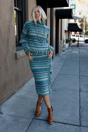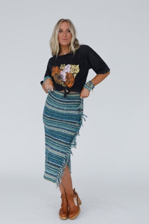 It's all things boho with the Ellis Fringe Midi Skirt! So effortlessly chic, it’s a head-turner you’ll love pairing with all your favorite tops!