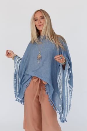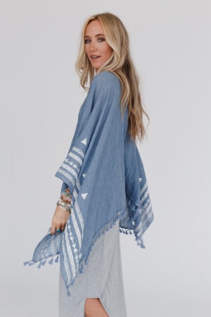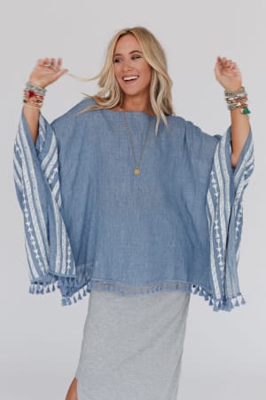 Fallon Embroidered Sleeve Tassel Poncho Color