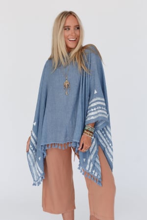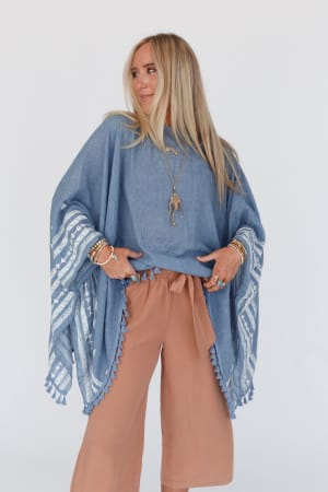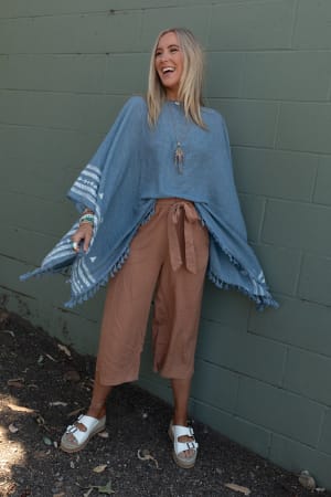 This gorgeous boho poncho looks amazing tucked into wide leg pants and paired with sneakers.