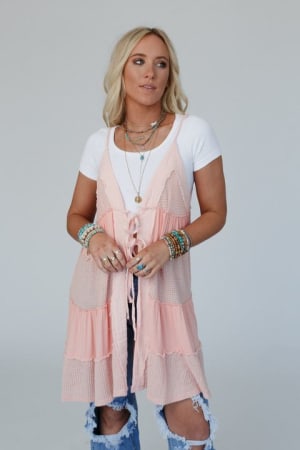 Whether lounging poolside or exploring new destinations you'll elevate all your boho ensembles in the Field Day Tie Front Vest, perfect with shorts or over a sundress for a effortlessly chic look, this versatile vest is your go-to layering piece!