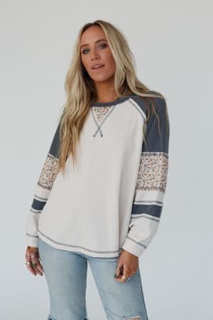 So cute and cozy, the Floral Drizzle Patch Sleeve Top is the perfect choice for you, featuring a boho silhouette that can't be beat!