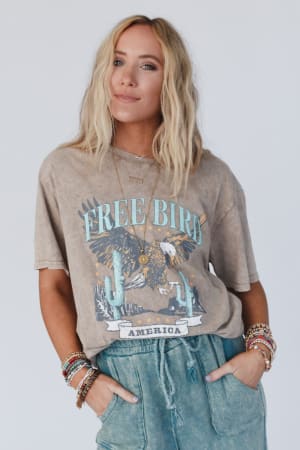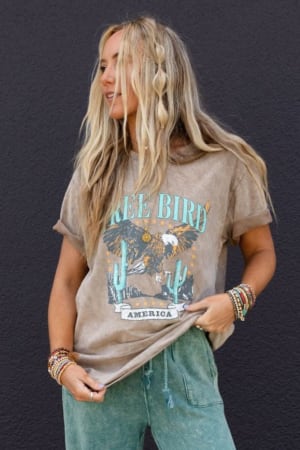 Get ready for your new favorite tee, the Fly Free Graphic Tee! Equally comfy as it is boho-chic, it's a must-have because it features: