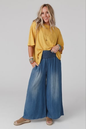 Never feel uncomfortable in a pair of jeans again with the Free Falling Wide Leg Pants!