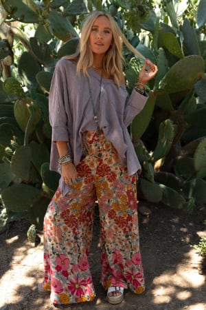 Groovy vibes only while wearing the Groovy Gardens Wide Leg Pant!