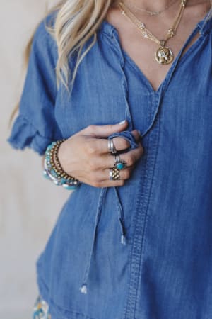 Pair this boho top with dark wash jeans for a cool denim on denim look.