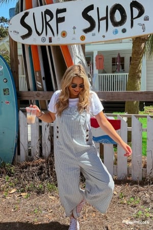 Inspired by our beloved High Hopes Slouchy Denim Overalls, we now offer the High Hopes Denim Overalls! The style we all swoon over, but now slightly slimmer and with an eye-catching striped print - what’s not to love?!