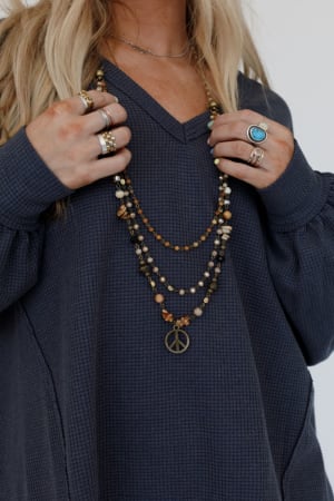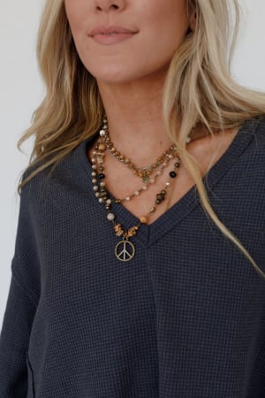 Add a cool and classic bohemian touch with the Kala Peace Necklace, this necklace will add something eye-catching to all your fave boho looks!
