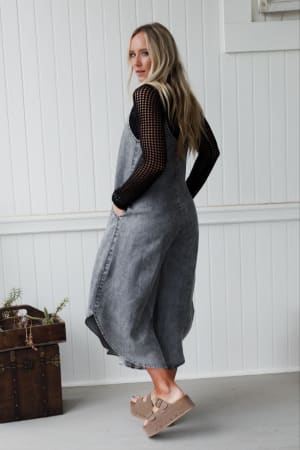 Layer this wide leg jumpsuit with a long-sleeve layer underneath or an oversize sweater on top for a cozy casual look.