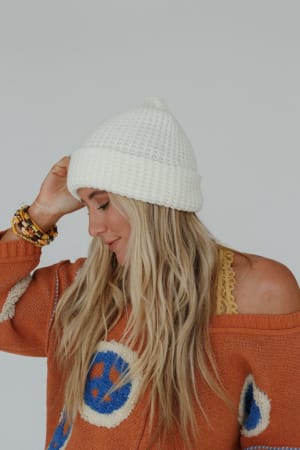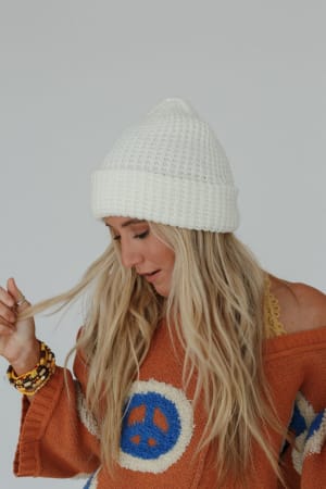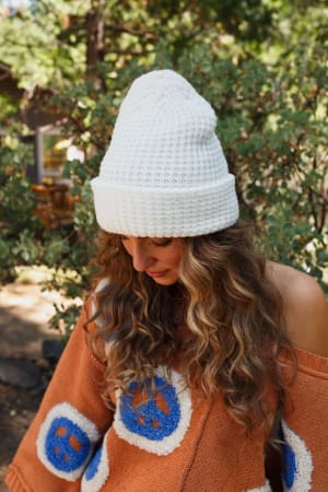 Get ready for the effortlessly cool and classic touch of the Maybelle Waffle Beanie—the perfect addition to your cool-weather wardrobe!