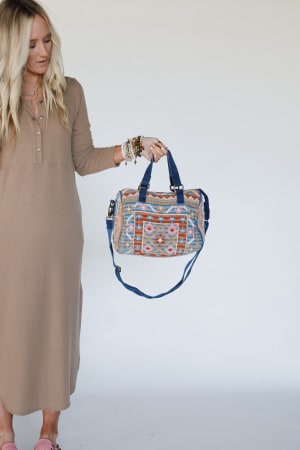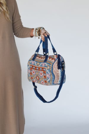Getting away for the weekend? No bohemian fashion look on the go is complete without the Ocean Island tribal print duffle bag.