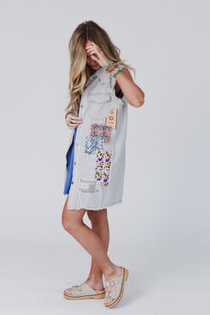 The One Of A Kind Sleeveless Denim Dress Vest gets its name for a reason - it truly is so unique, you'll feel like the one of a kind that you are!