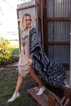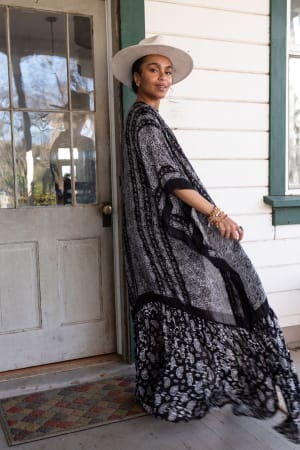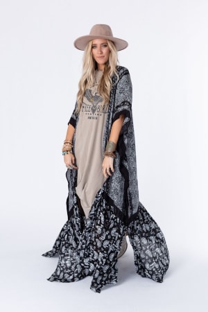 The Paisley Tapestry Duster Kimono is the ultimate finishing touch for any look! The duster features a mix of mandala-inspired and paisley print with an open silhouette, kimono sleeves, and a ruffled bottom hem. It's comfortable, boho, and effortless - an essential piece for any boho girl's wardrobe!