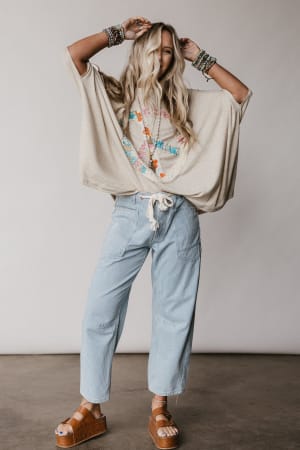 Get into the groove with this light and flowy top. Pair with skinny jeans or leggings to give it plenty of movement.