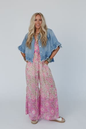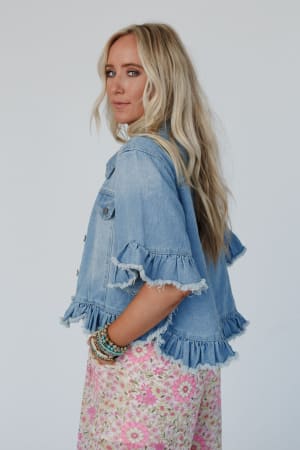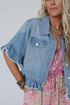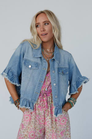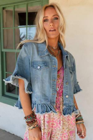 This boho denim jacket pairs perfectly with maxi dresses and sandals.