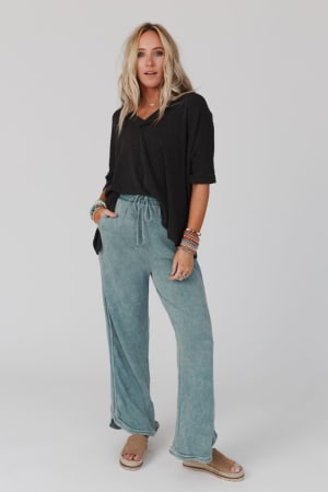Comfy and cozy all in one! Our Full length wide leg lounge pant with drawstring waist and pockets will be your closet fave for pairing with graphic tees for school pick up or running errands!