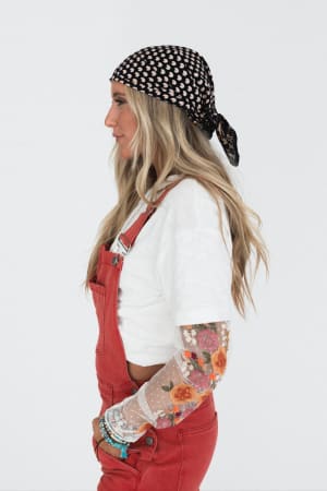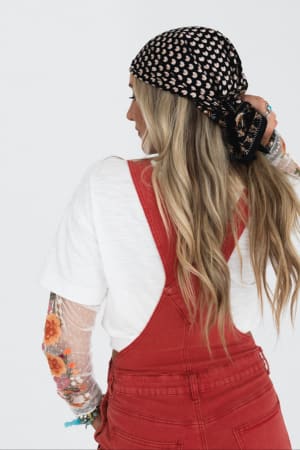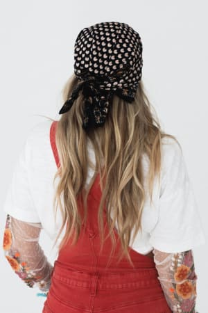 This classic bandana-style scarf looks amazing with a black maxi dress and boots.