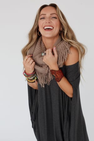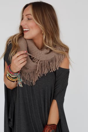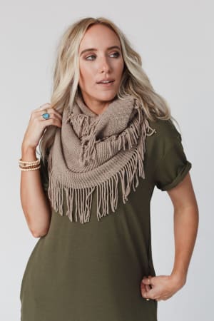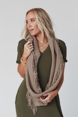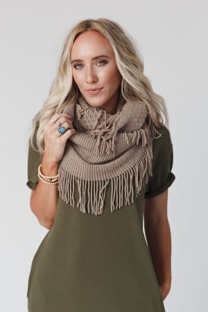 The perfect boho cozy layering piece for the fall and winter seasons is the Sweet Dreams Fringe Infinity Scarf!