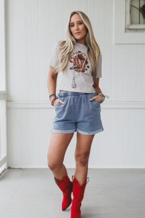 Say howdy to this sassy western-inspired tee that pairs perfectly with flared jeans.