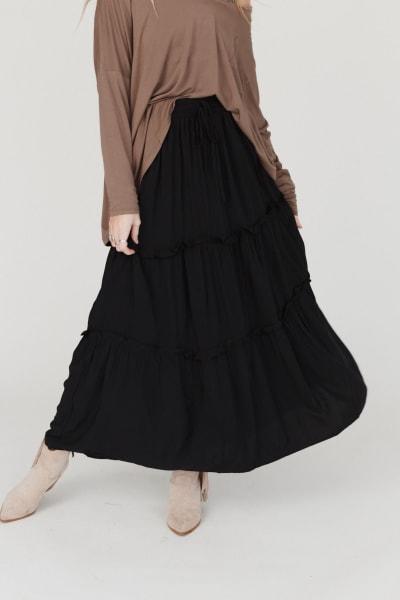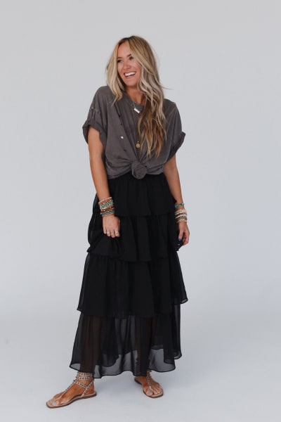 Washed Ashore Ruffled Maxi Skirt: undefined