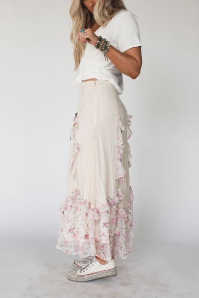 Washed Ashore Ruffled Maxi Skirt: undefined