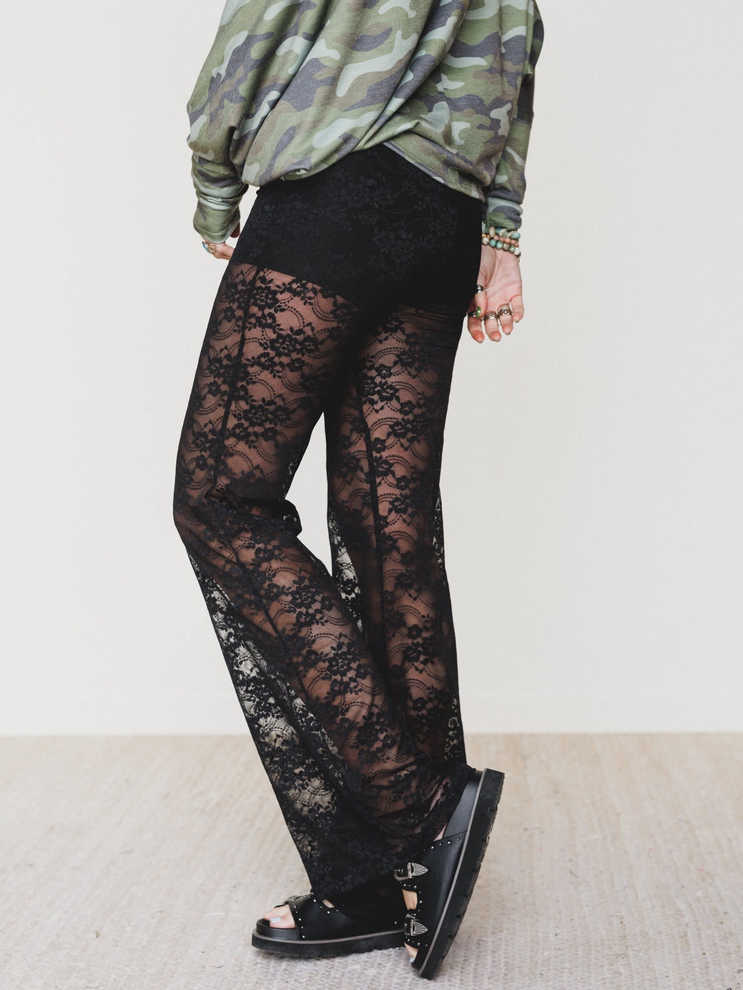 Bold, romantic, and just a little daring — the All In Time Lace Pants are made to turn heads. With their intricate lace detail and flattering flared silhouette, these beauties bring effortless edge to any look.