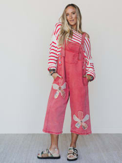 - High Hopes Flower Patch Overalls: Washed red denim with wide cropped legs and playful floral appliqués that feel straight out of a '70s daydream. Adjustable straps and side button closures keep the fit easy and flattering.