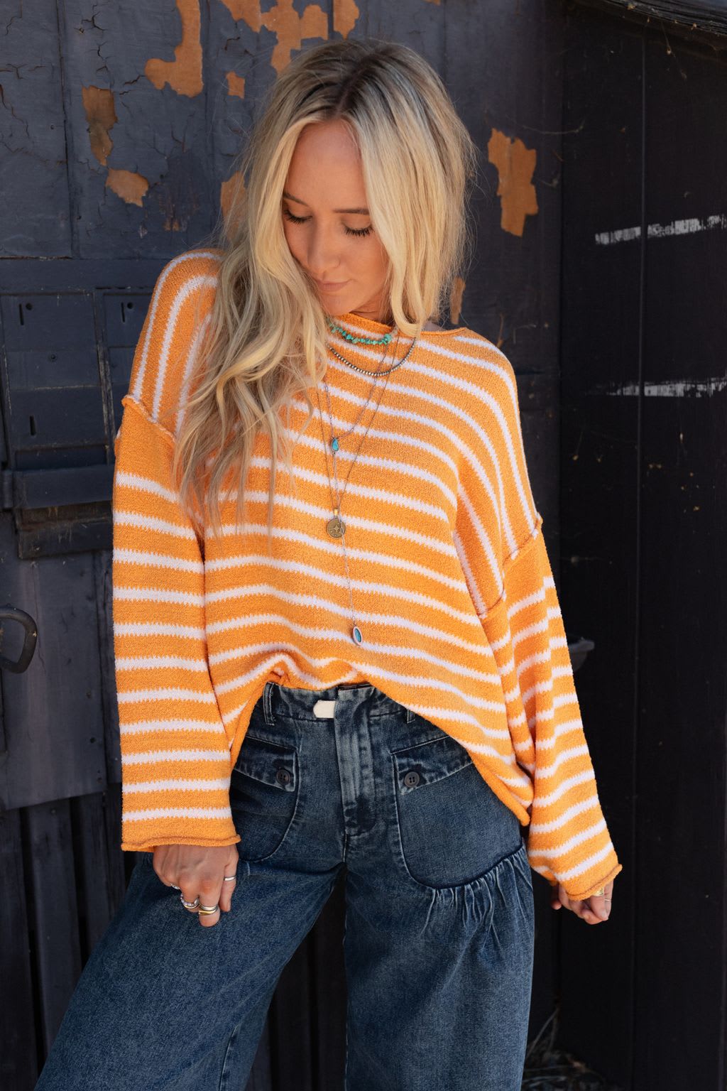 Summer nights and fall mornings have never been better than in the All My Stripes Oversized Sweater!