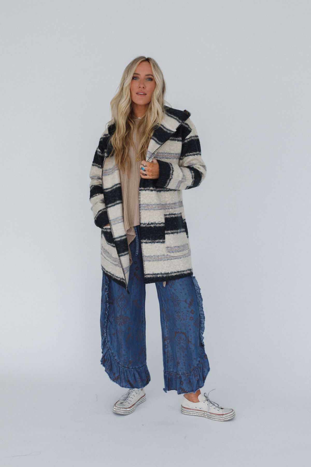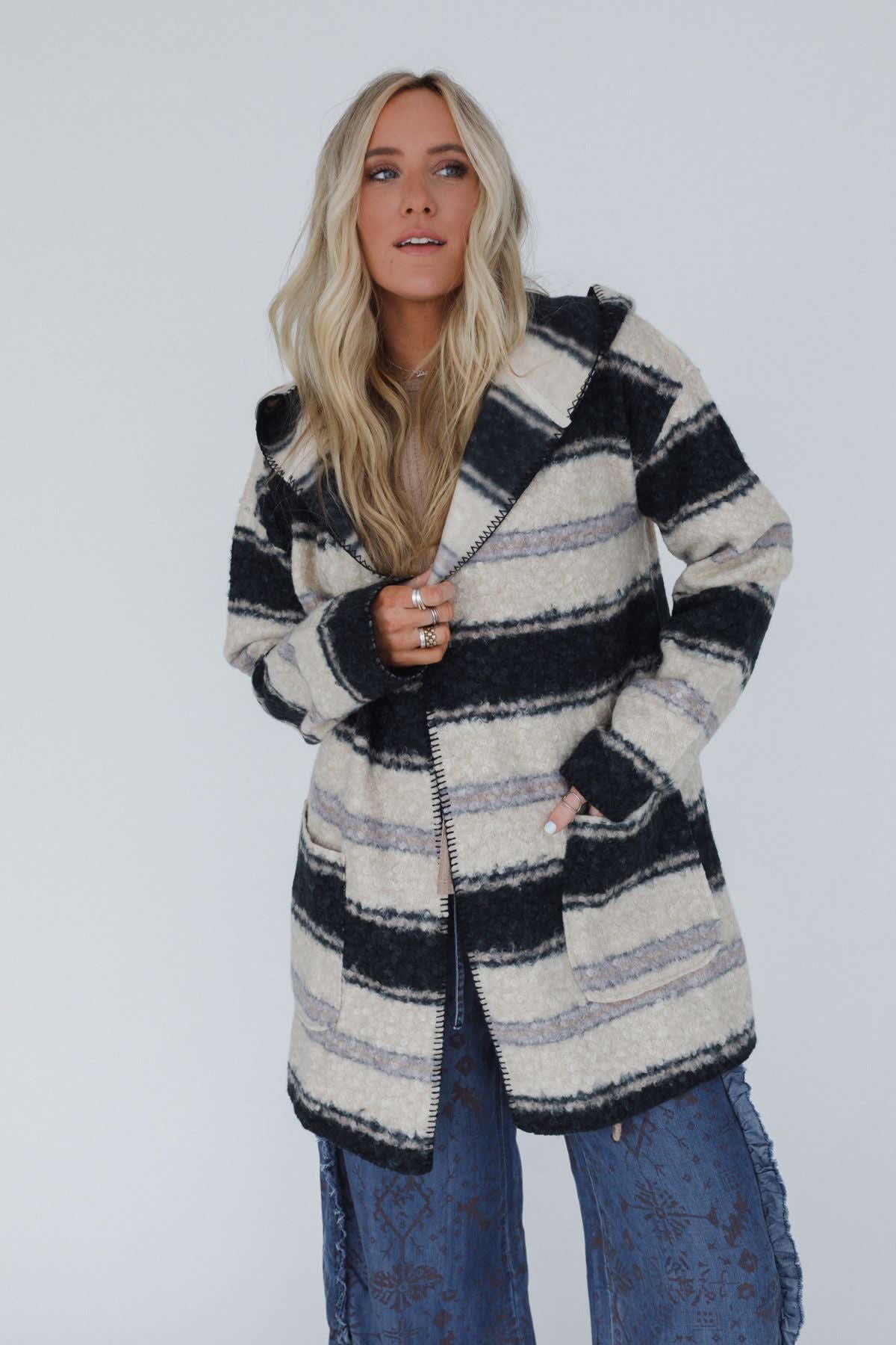 Boho-chic with the comfort you deserve, the Alpine Oasis Hooded Coat will quickly become one of your favorite coats to wear!