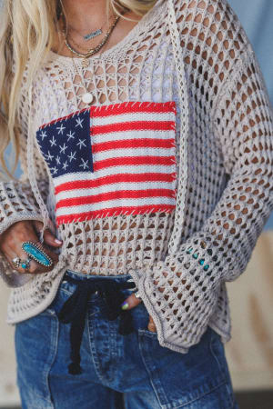 Grab yourself a slice of Americana style with this gorgeous open knit beige hoodie.Β