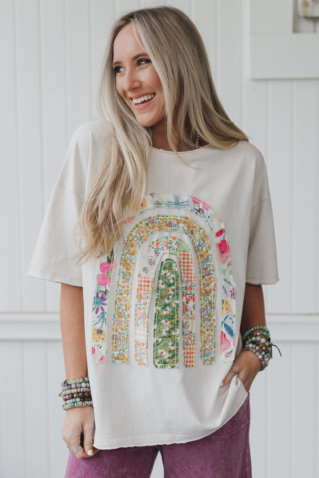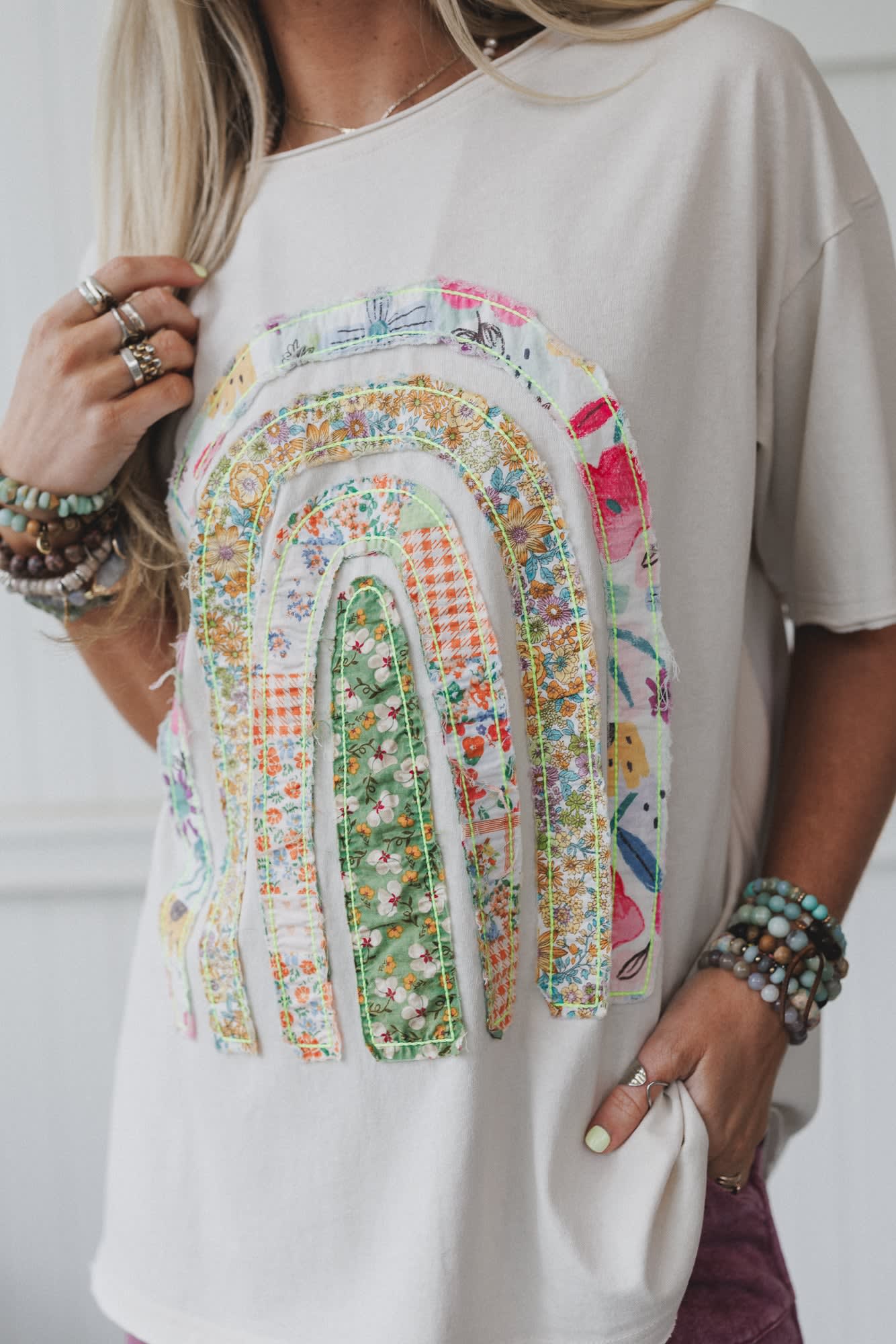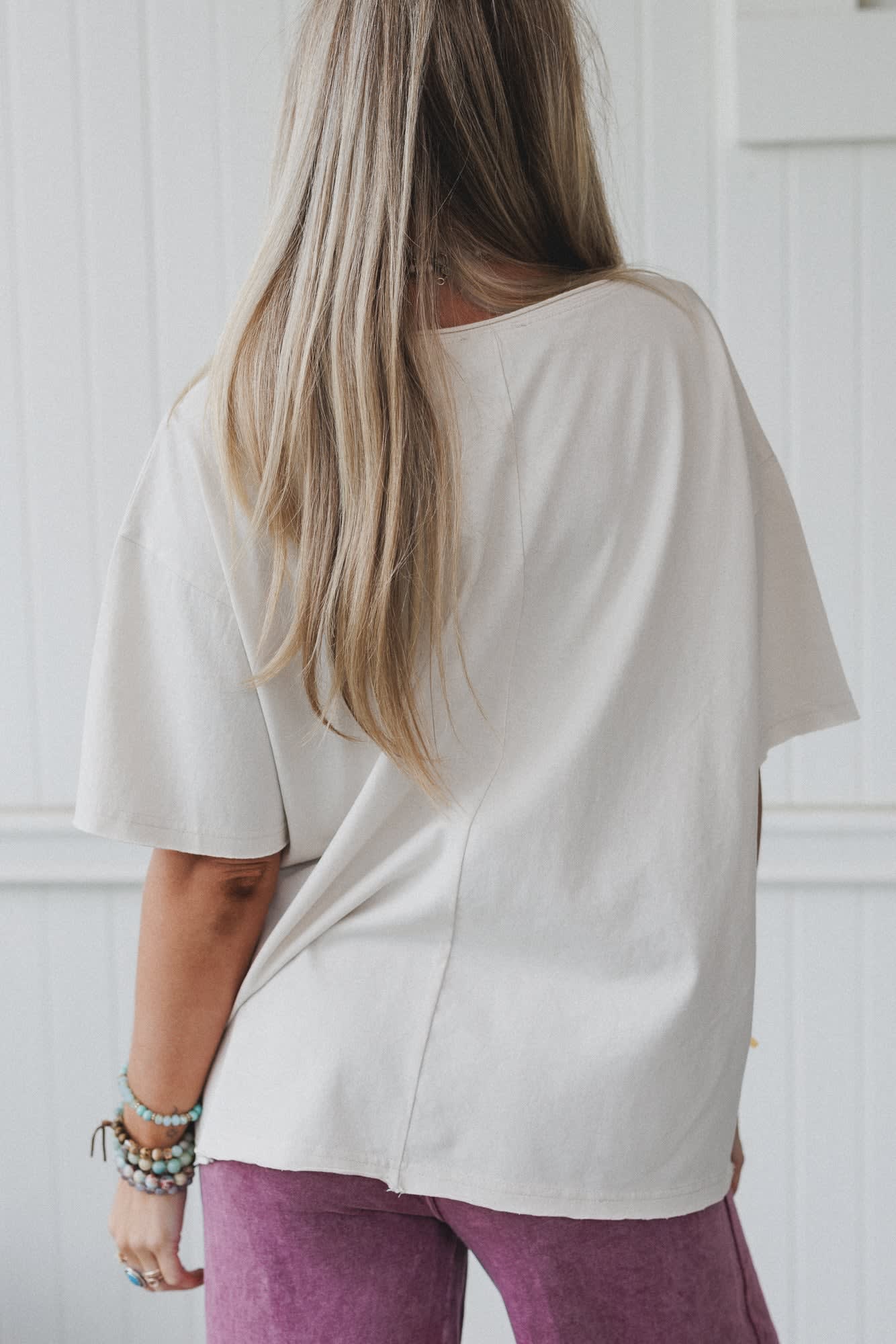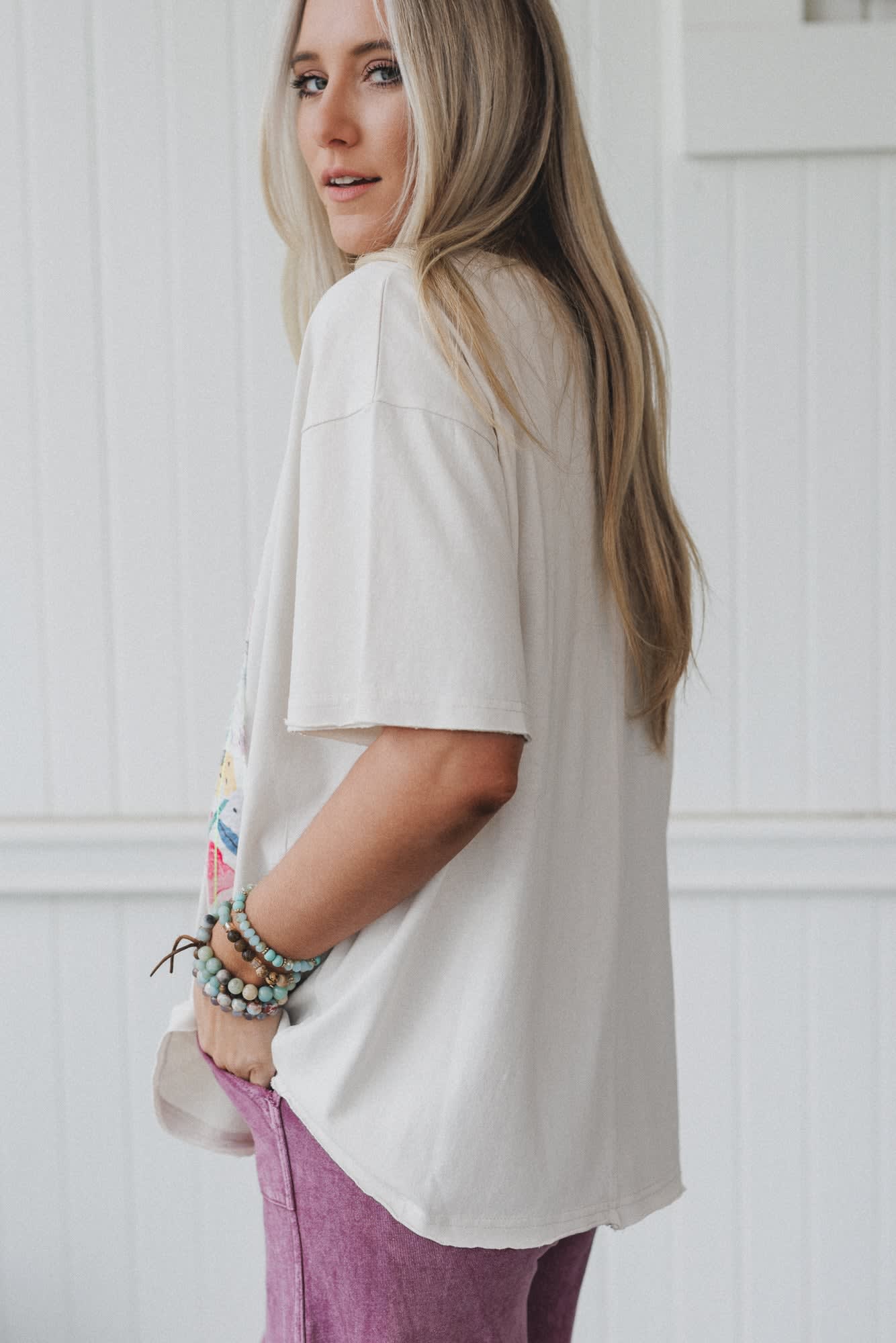For a boho graphic tee with a pop of color, go with this everyday chic piece.