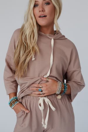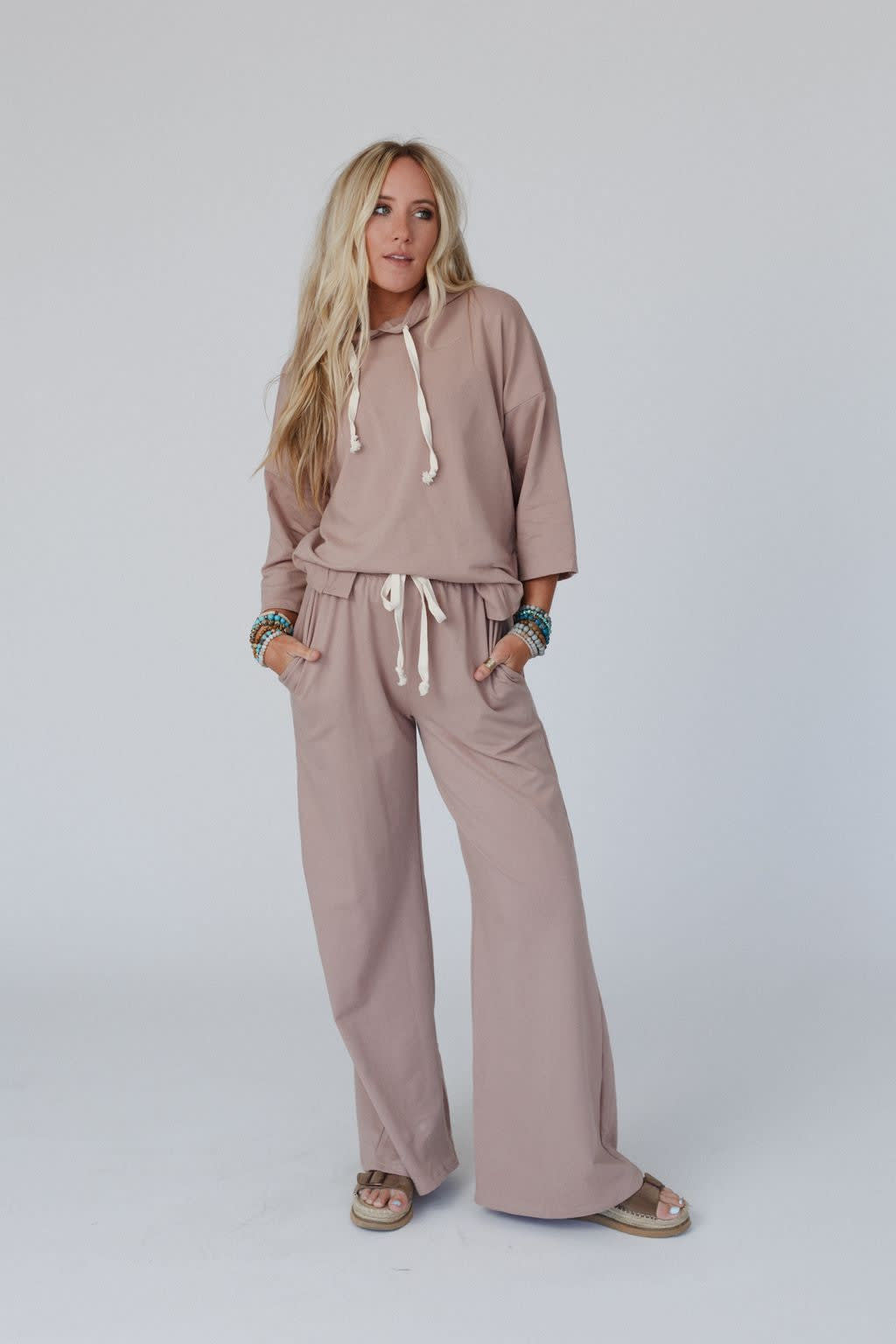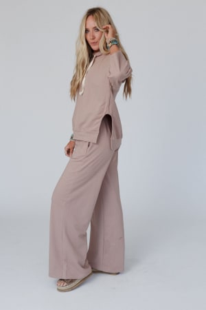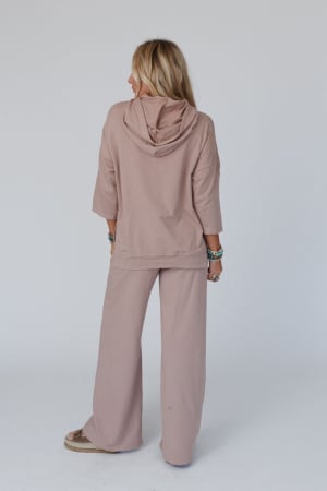 - Comfortable hoodie and wide leg pant set made of cozy sweatshirt fabric