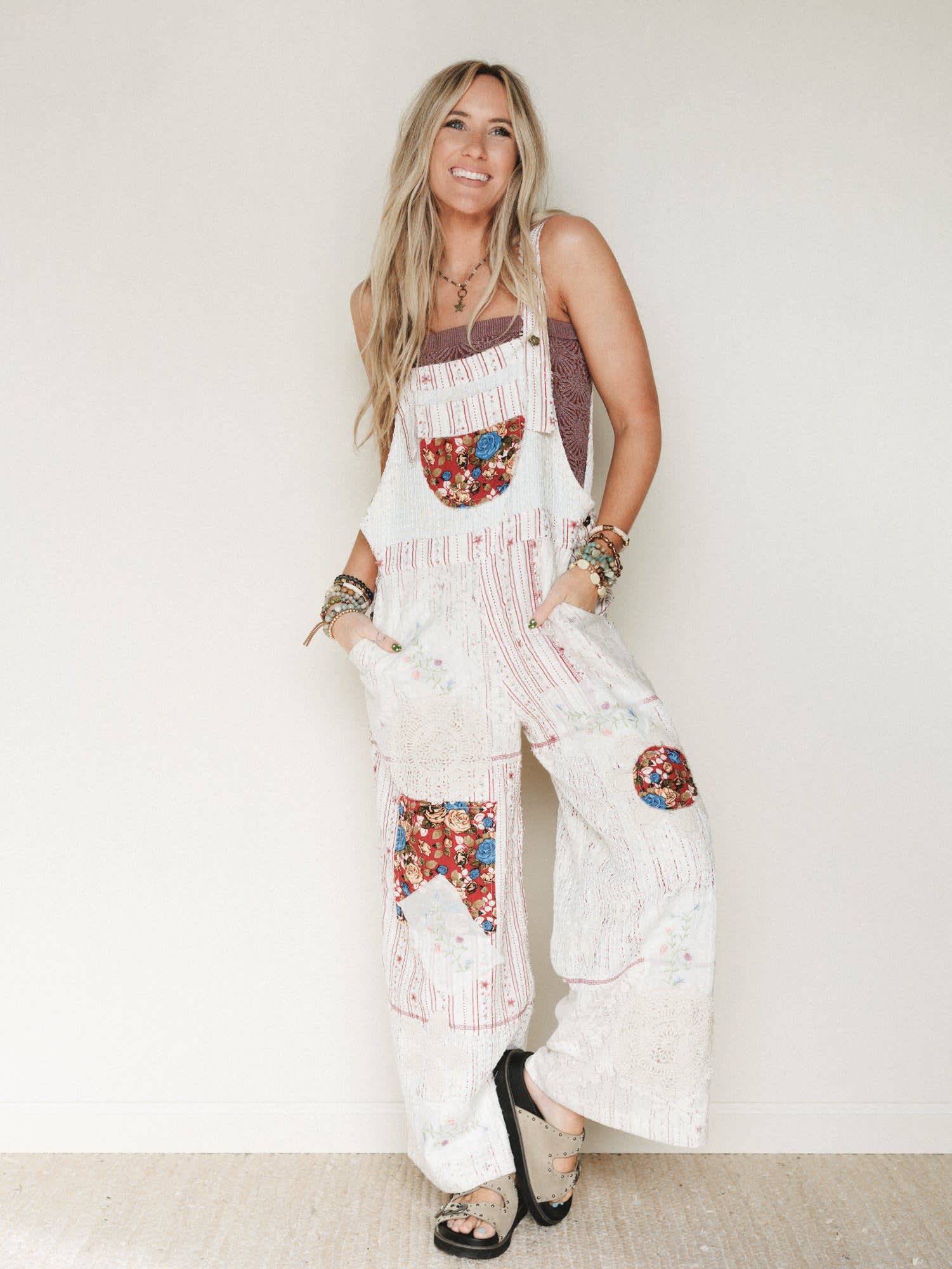 Made for the days when you want your outfit to feel as creative as you are—this patchwork jumpsuit is the kind of statement piece that turns a simple festival outfit or weekend market stroll into a full-on boho moment.