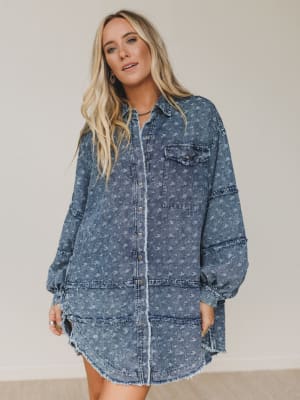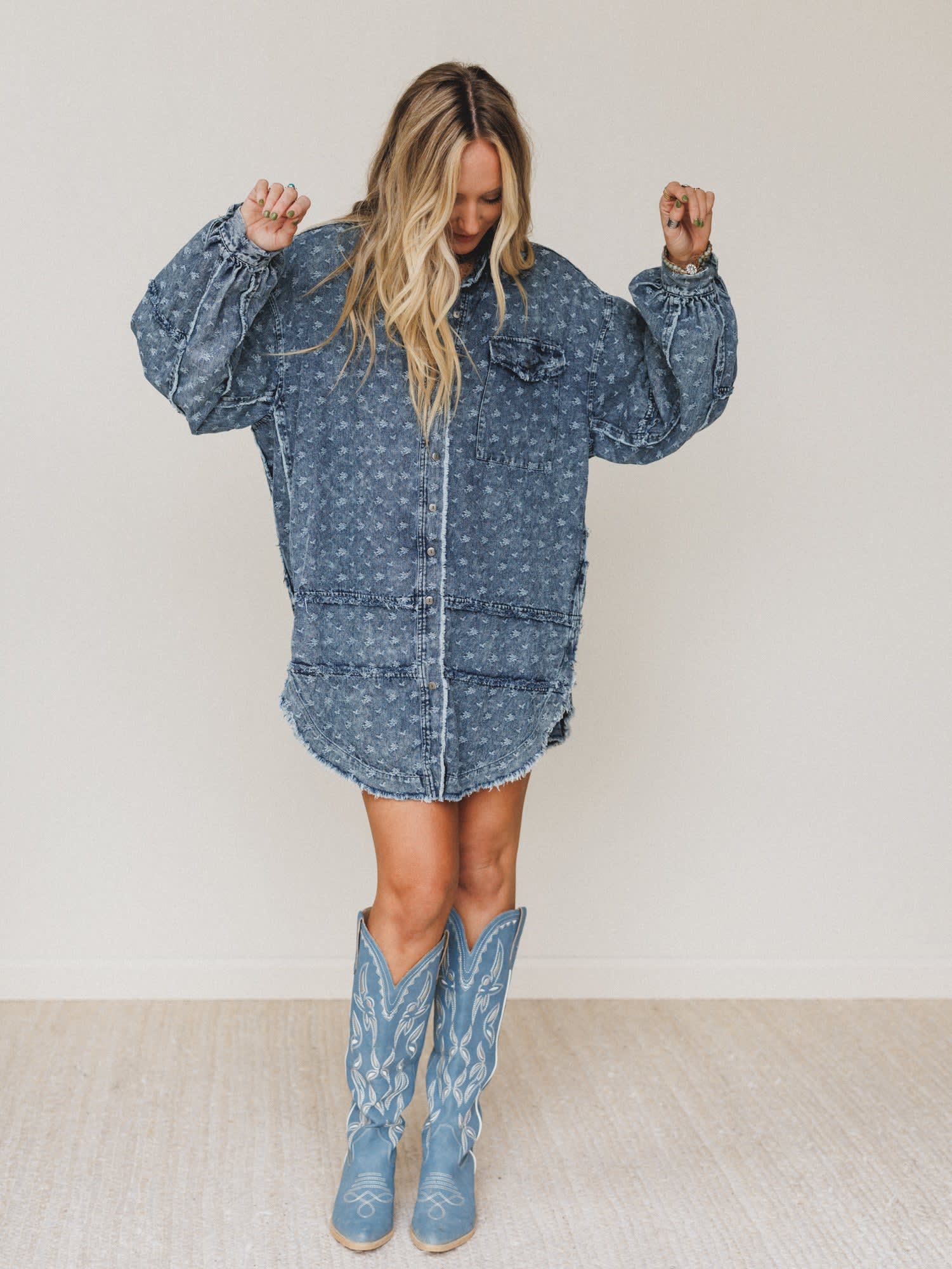 Made for slow mornings, sunset drives, and everything in between—this denim dress is your new go-to for effortless boho charm. Its relaxed silhouette and textured details make it easy to dress up or down, with just the right touch of lived-in love.