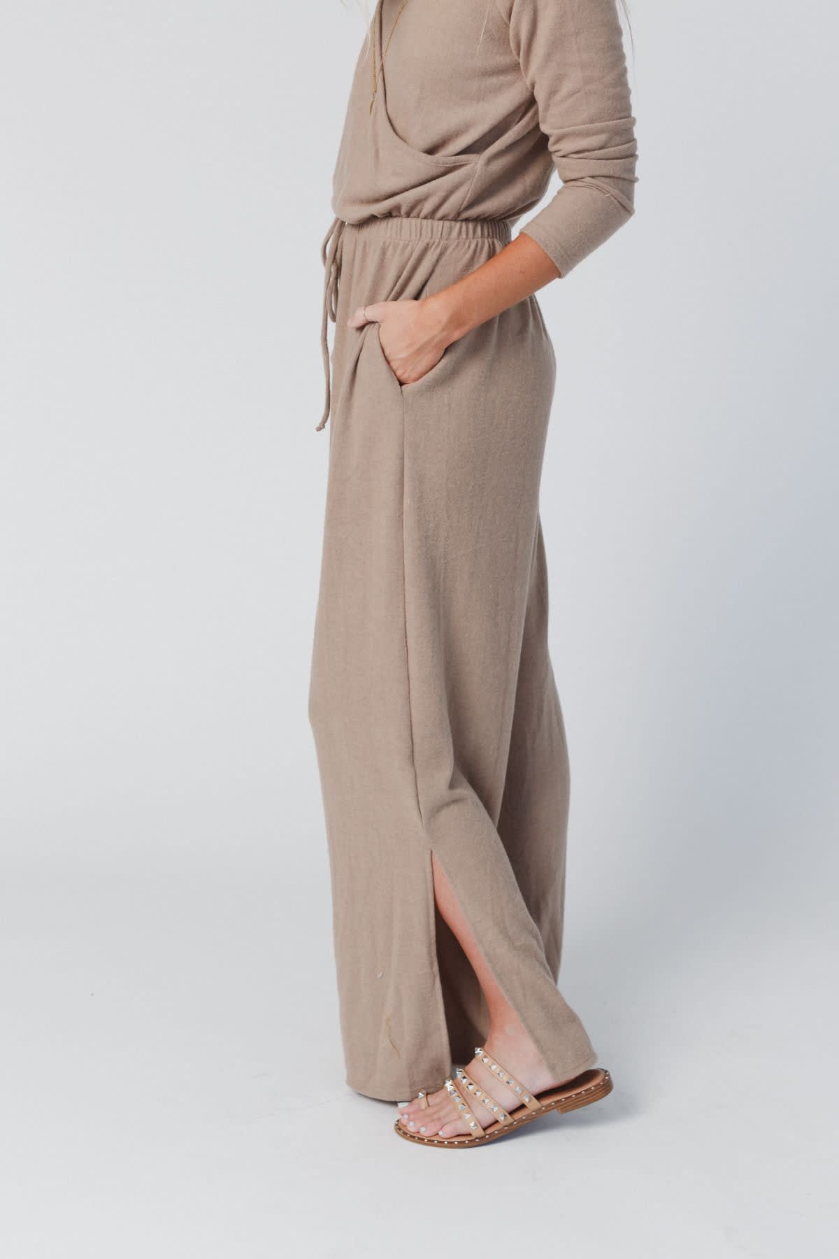 - Flowy wide pant legs with side slits along the seam for added comfort and style