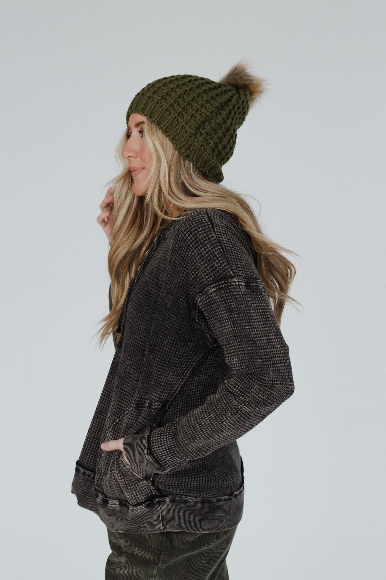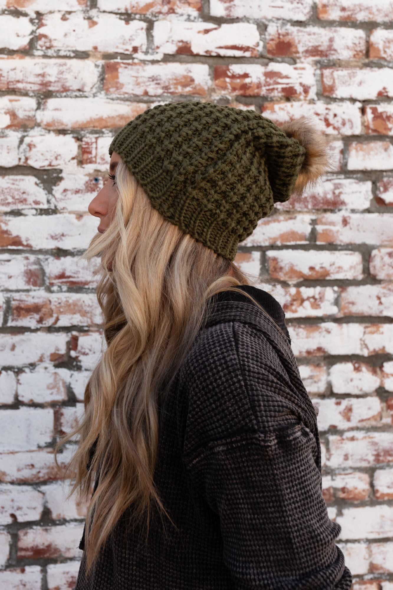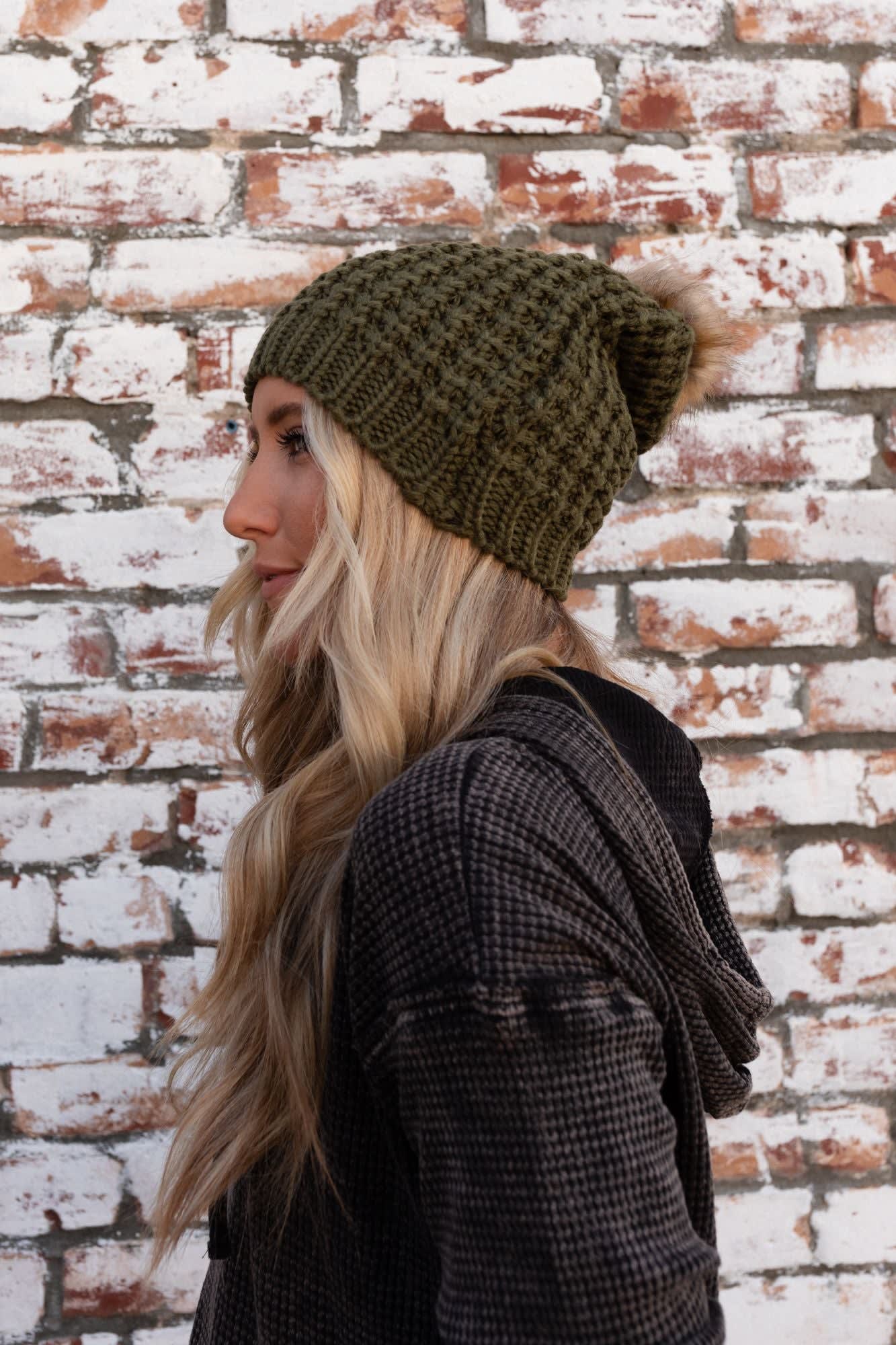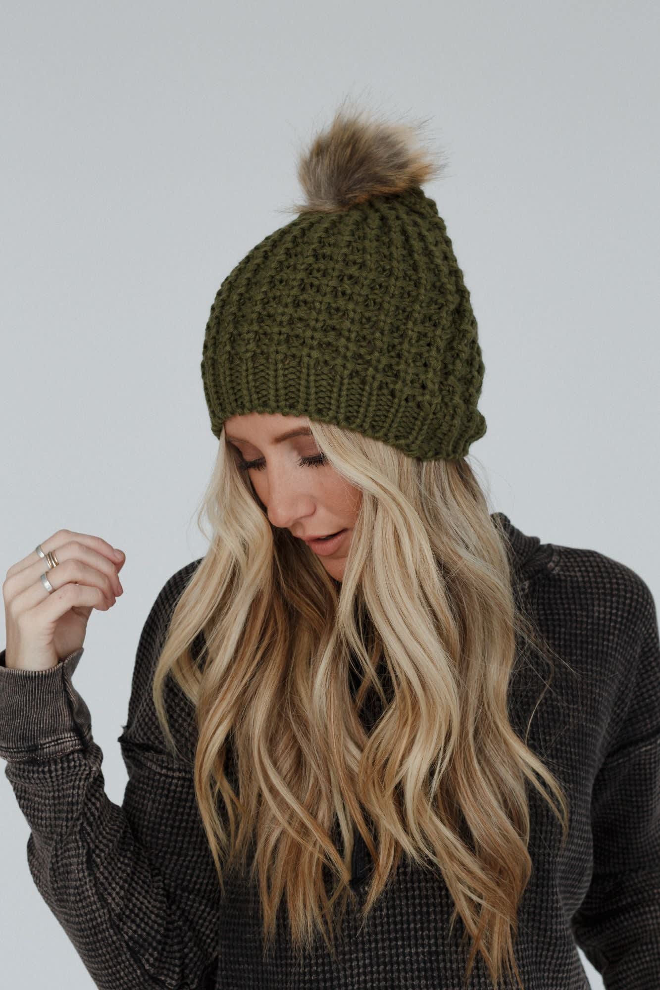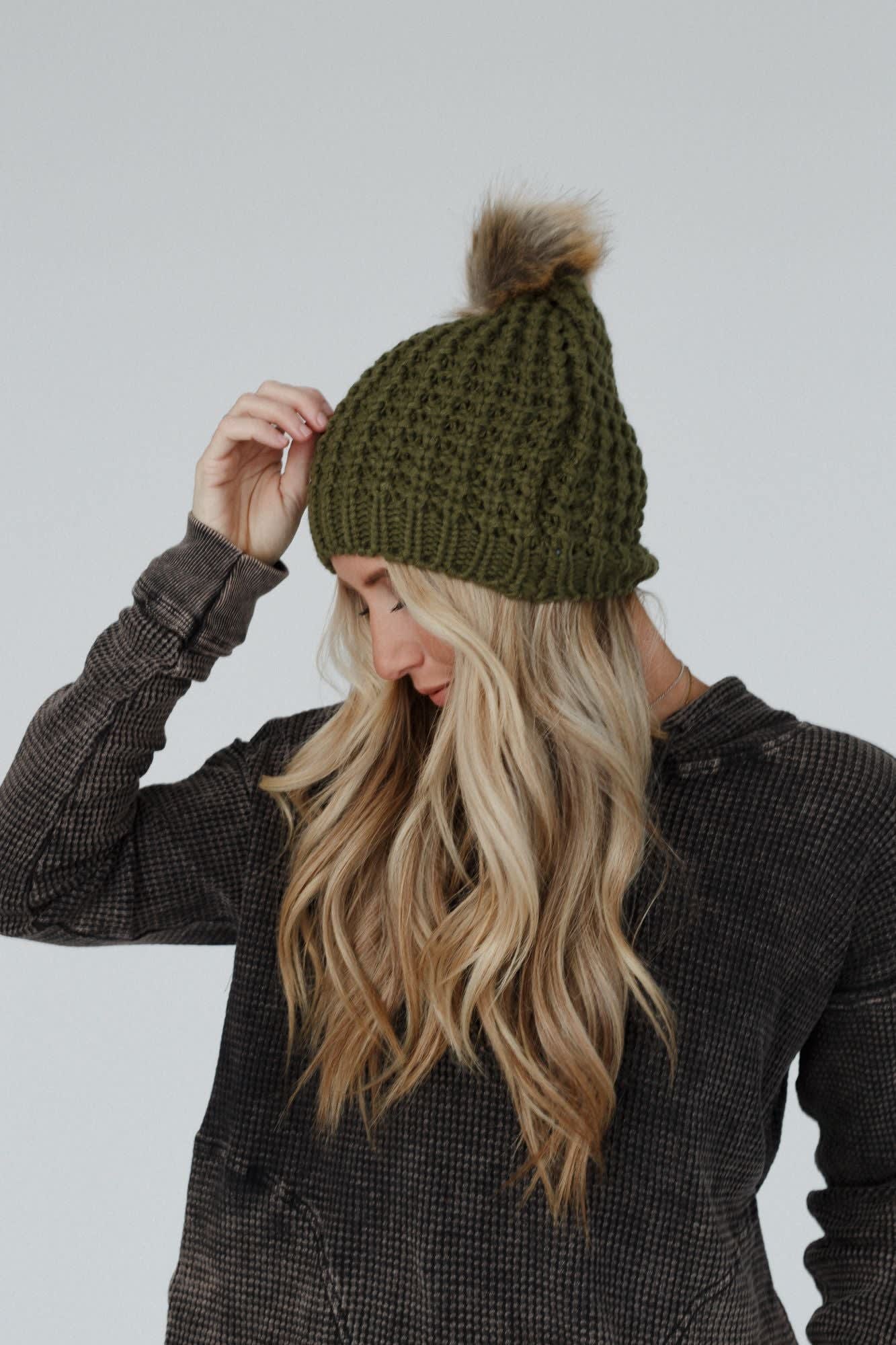 The Aspen Waffle Knit Faux Fur Beanie is adorable - this winter staple is a seasonal must-have!