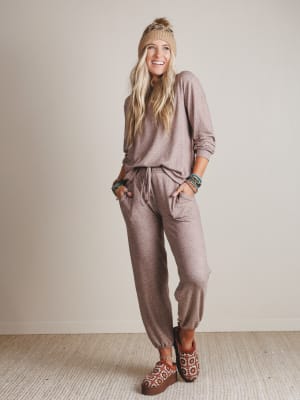 Whether you're sipping cocoa fireside or lounging after a snowy adventure, the At The Lodge Lounge Set is your go-to for winter relaxation. This two-piece set blends comfort with effortless style so you can look pulled together without even trying.