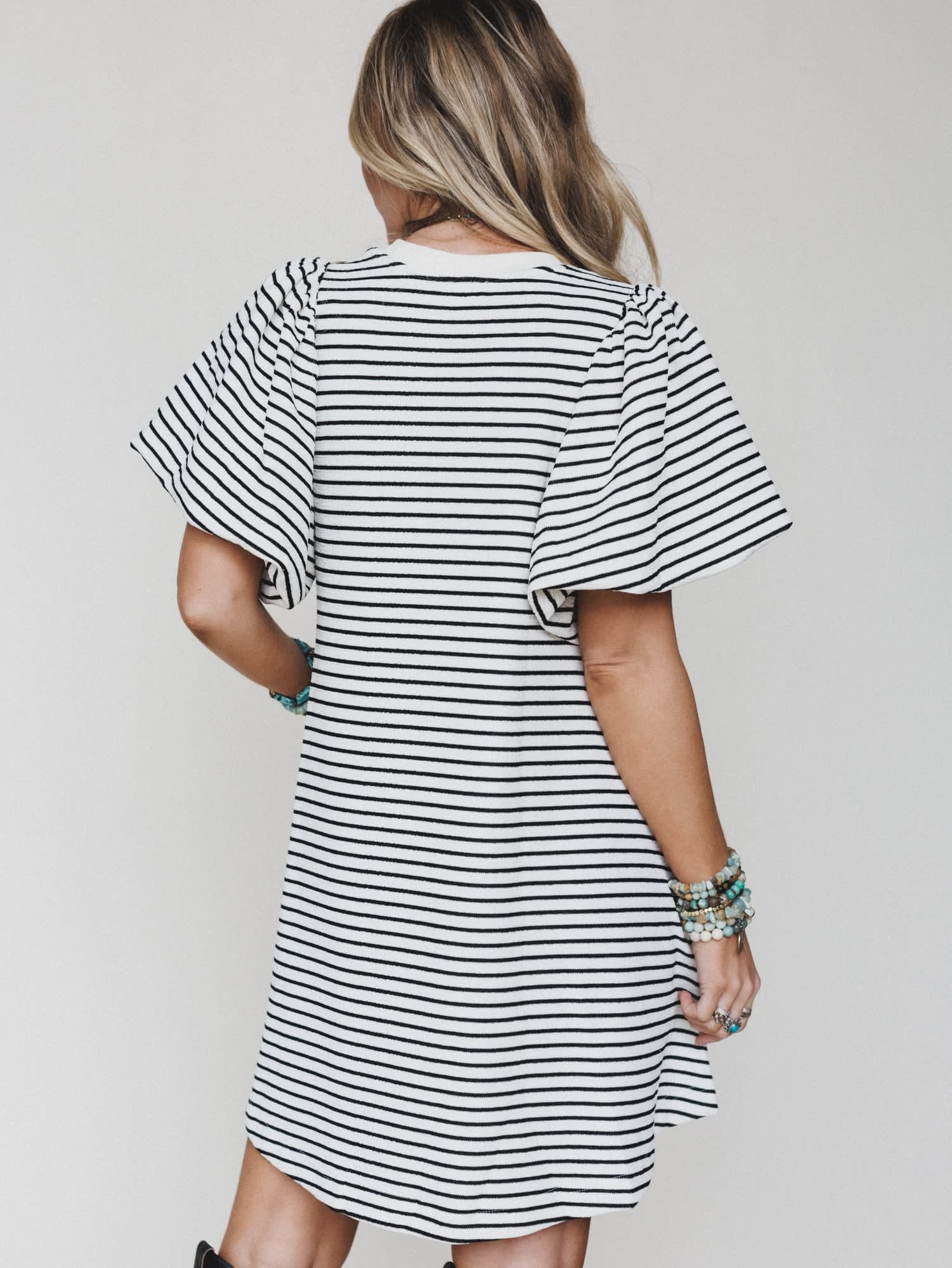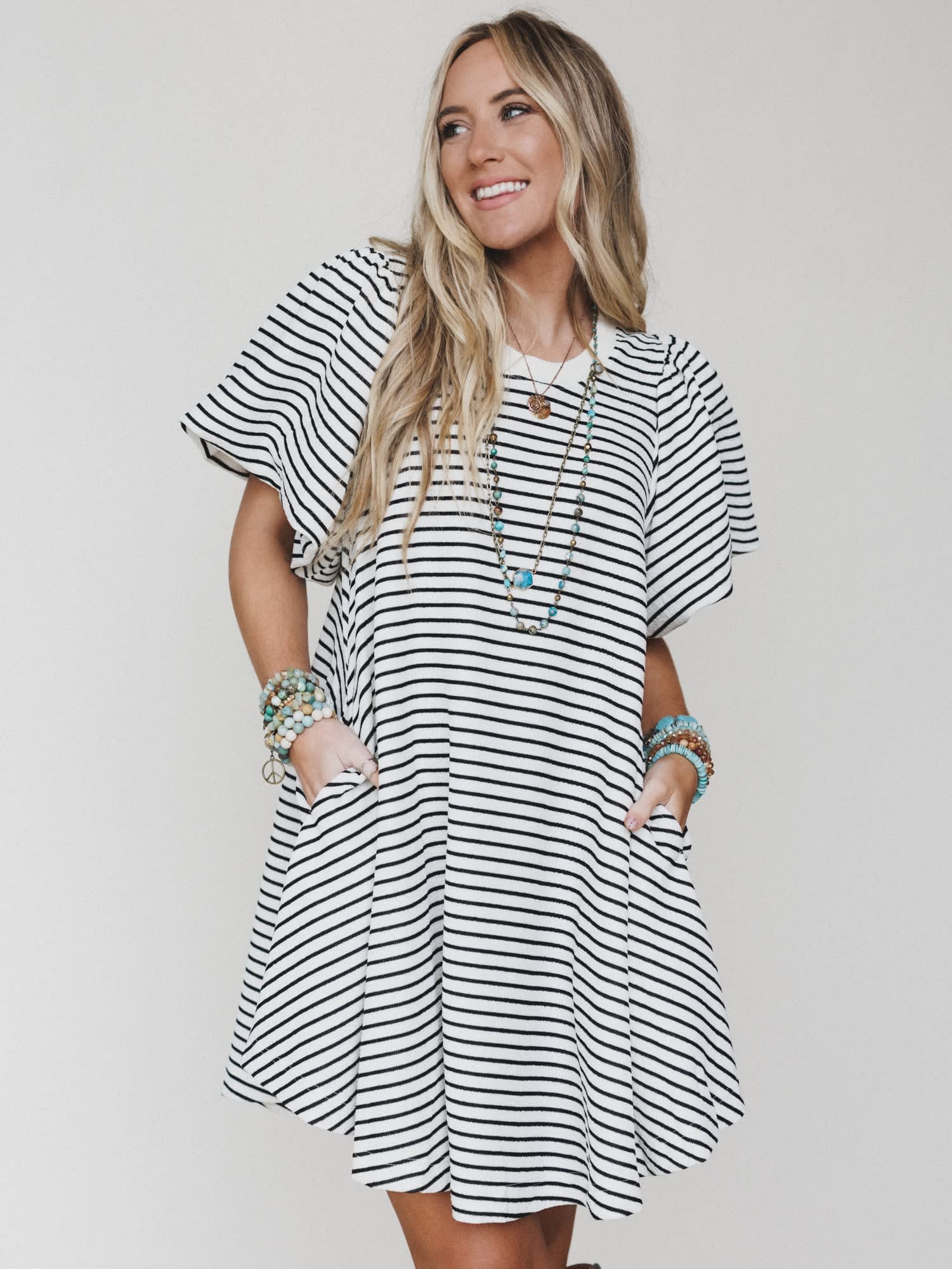 - Soft striped dress featuring a relaxed, flowy silhouette for all-day comfort.