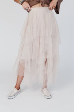 - Boho Ballerina Skirt: Light as air and made for movement, this layered tulle midi skirt adds romantic texture and graceful volume to your every step.