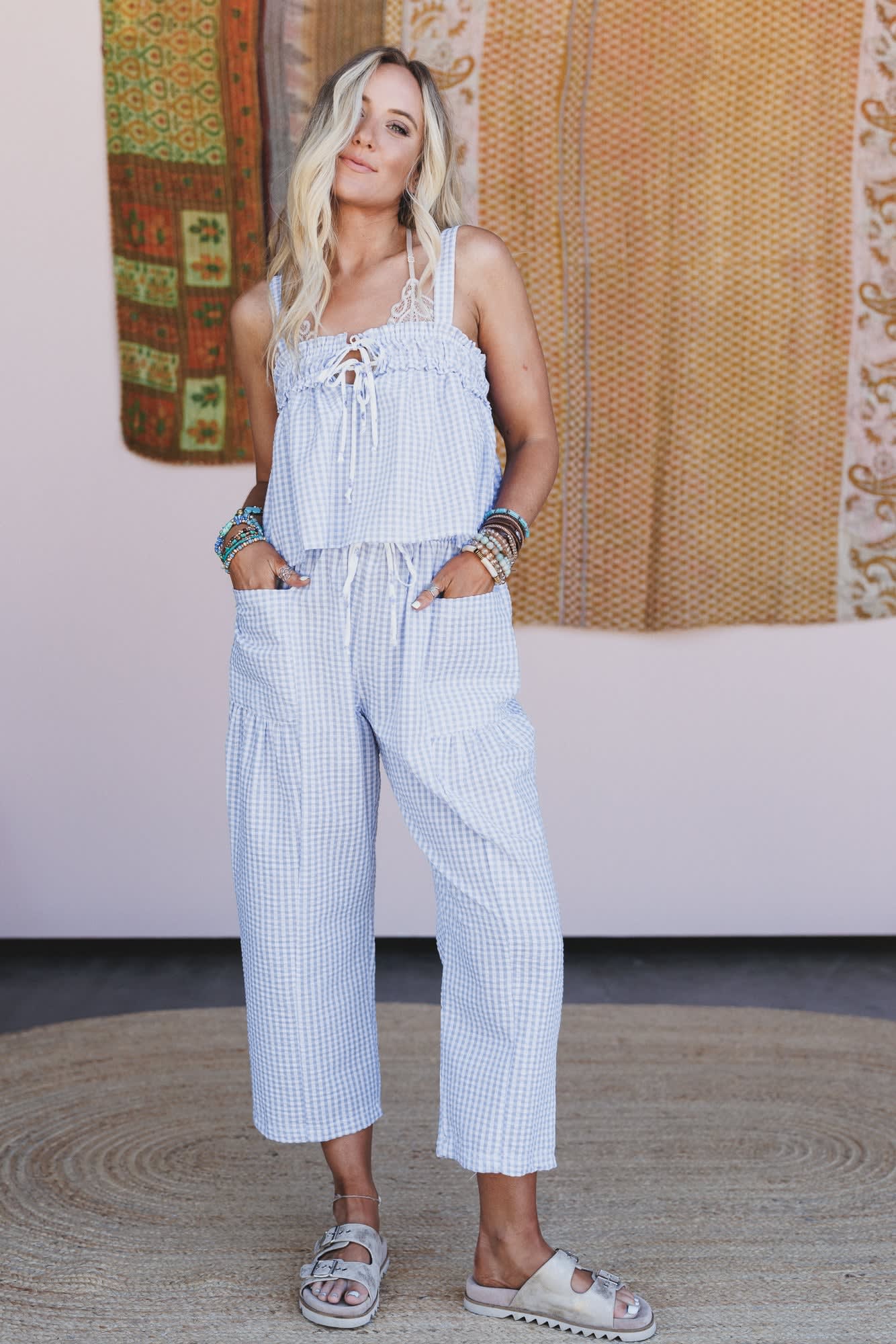 Pair with your favorite slides and stacks of bangles, and let this breezy gingham set take you from lounging to lunch in a snap.
