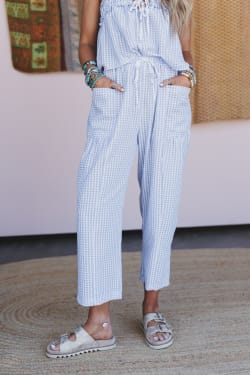 • Bayside Gingham Print Pants: With a relaxed fit, wide cropped leg, and comfy elastic waist, these pants are as functional as they are adorableβ€”complete with roomy pockets and all-day ease.